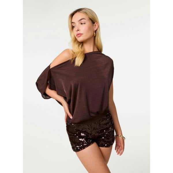 A new add on to your nice top and jeans 'fit. This sexy Off Shoulder Slinky Band Top features an off the shoulder asymettrical neckline and a stretchy band hem