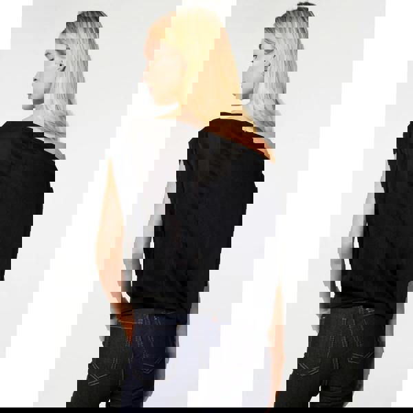 A new add on to your nice top and jeans 'fit. This sexy Off Shoulder Slinky Band Top features an off the shoulder asymettrical neckline and a stretchy band hem