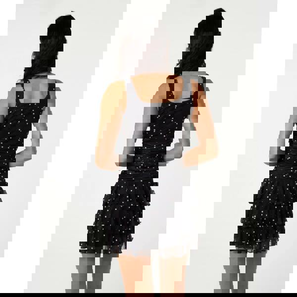 Feel chic and make a statement with this Polka Dot Square Neck Mesh Dress
