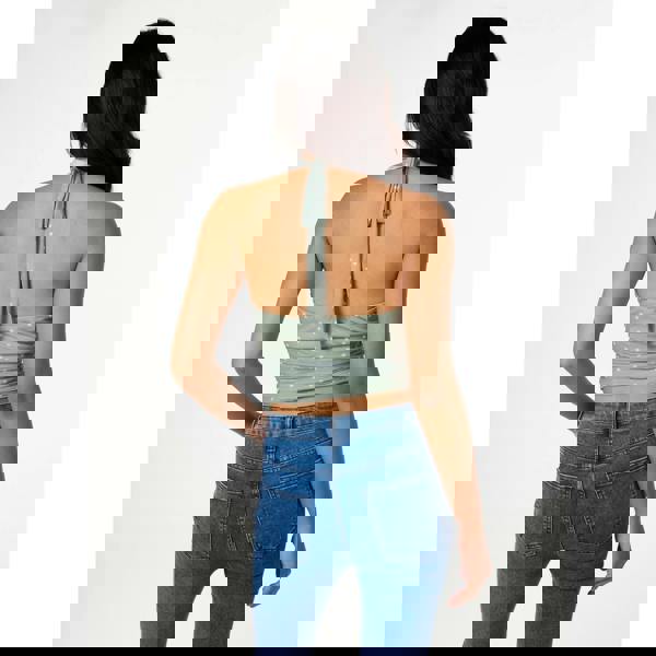Pink Vanilla Ruched Side Halter Top In Polka Dot