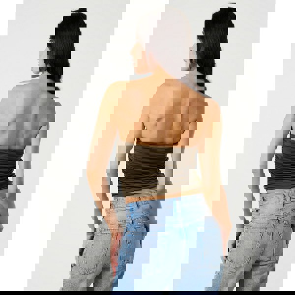 Level up your date night 'fit with this Ruched Slinky Bandeau Top by Pink Vanilla