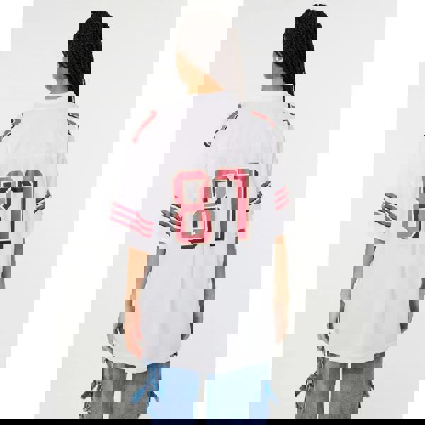 Football-core meets girly vibes. Inspired by old school jersey tops, this T-shirt features an oversized fit for endless styling options