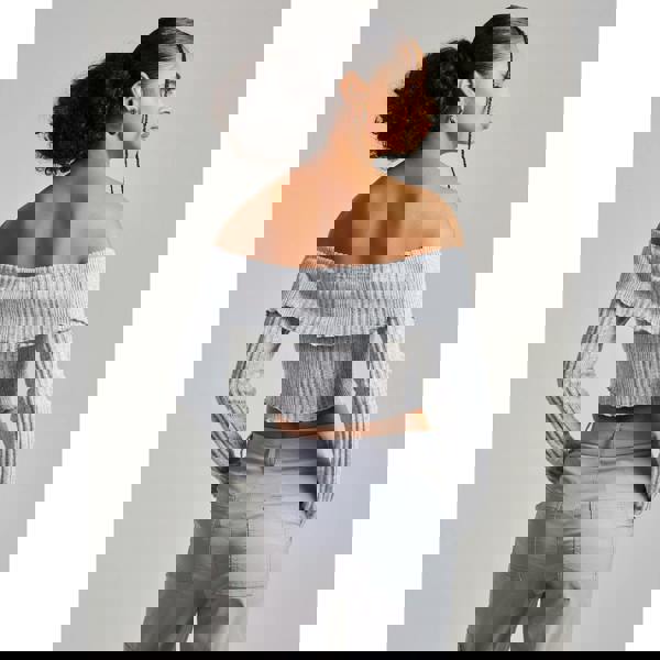 This Wide Brushed Ribbed Bardot Top combines long sleeves with a Bardot neckline that dramatically reveals the shoulders. This fitted top is in fine ribbed knit for extra comfort