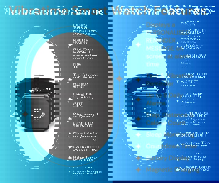 3. Wake-up alarms: The watch can be used as a standard alarm clock, with the added benefit of a custom message to start the day on a positive note.
