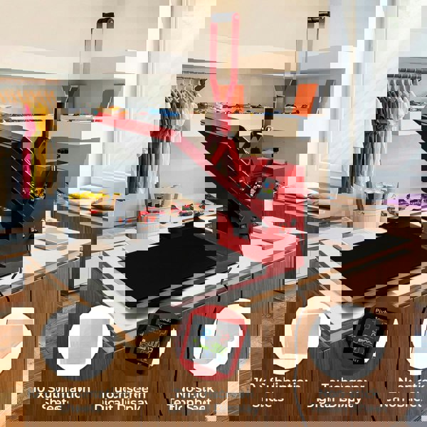 While the 50 x 50cm platen provides a large enough surface to print onto a variety of items, its compact structure allows it to perfectly fit into a workshop or studio and easily moved about due to being super lightweight. Manufactured from powder coated steel, this machine is incredibly robust and built to withstand heavy use. The stunning red finish adds a bold statement to your workspace but is also extremely protective to ensure it stays looking good for a long time to come.