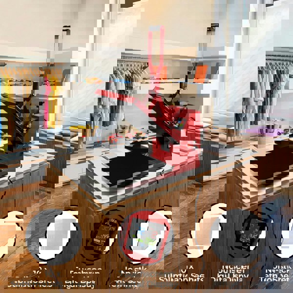 While the 38 x 38cm platen provides a large enough surface to print onto a variety of items, its compact structure allows it to perfectly fit into a workshop or studio and easily moved about due to being super lightweight. Manufactured from powder coated steel, this machine is incredibly robust and built to withstand heavy use. The stunning red finish adds a bold statement to your workspace but is also extremely protective to ensure it stays looking good for a long time to come.
