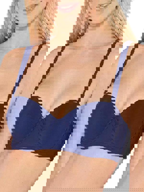 In a classic navy finish, the Plain Navy Underwired Bikini Top is an underwired bikini top with adjustable straps and a plastic clip back fastening. Made from a polyamide and elastane blend, it offers a clean, minimal look suited to mix and match styling.