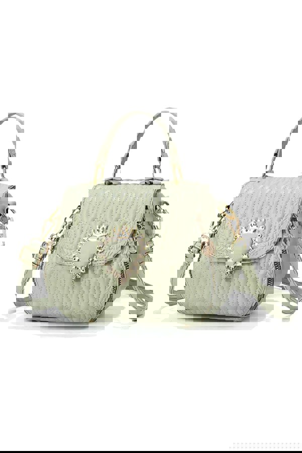 Add a romantic touch to your look with this quilted crossbody bag, featuring a stunning heart accent and top handle for added charm.