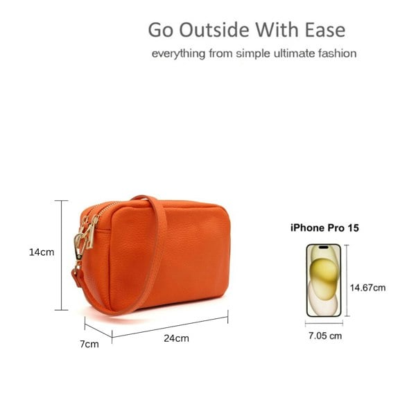 Crafted from high-quality leather, it features double zipper compartments to keep your essentials secure and within reach.
