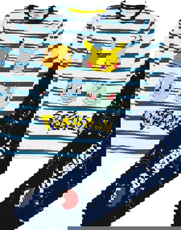 The striped pyjama top features fan favourite Pokemon characters Pikachu, Charmander, Squirtle and Bulbasaur underlined with the Pokemon logo in a colourful print