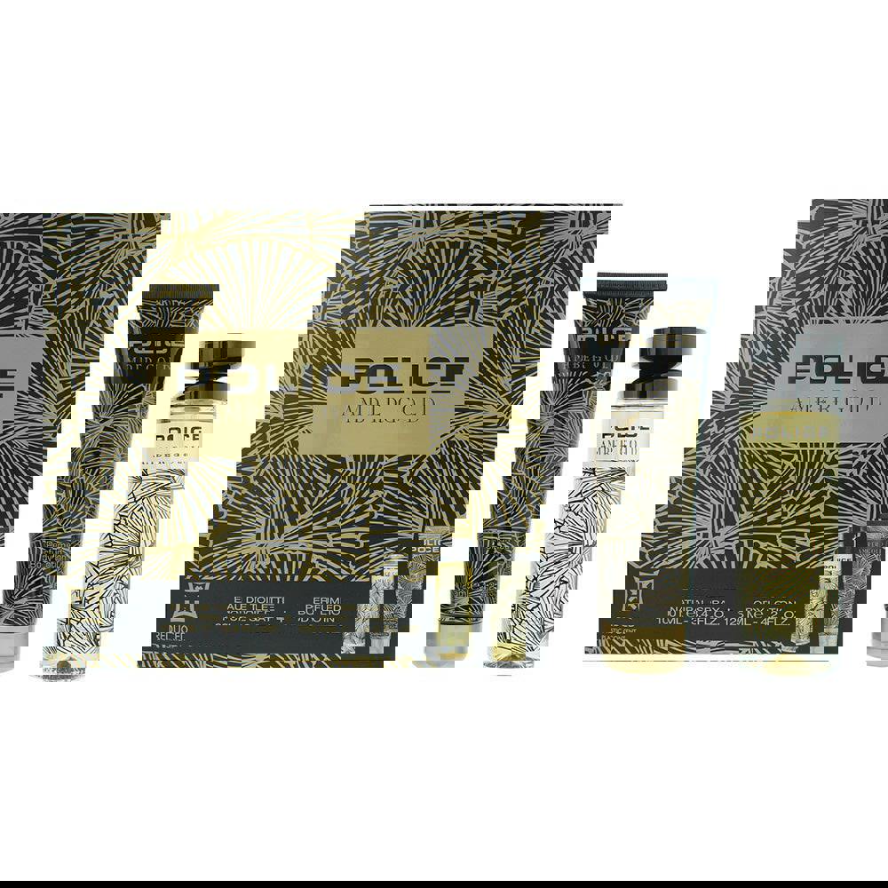 Police Amber Gold is presented as a two-piece gift set pairing an eau de toilette with a matching body lotion. Designed to be worn together or separately, it offers a simple way to build a fragrance routine, with the lotion helping to leave skin feeling comfortable while adding a light veil of scent.