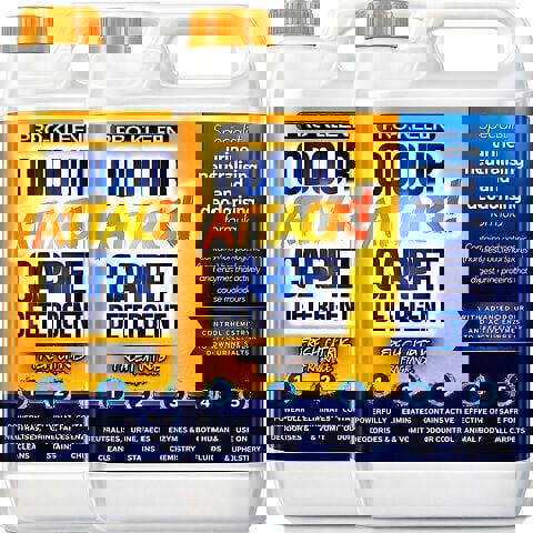 Keep carpets feeling fresher with Pro-Kleen Odour Attack!, a concentrated liquid carpet cleaner shampoo with a fresh citrus fragrance. This specialist neutralising and deodorising formula uses non-pathogenic bacterial spores and enzymes that digest proteins linked to malodours, alongside Advanced Odour Control Chemistry and active enzymes to break down salts.
