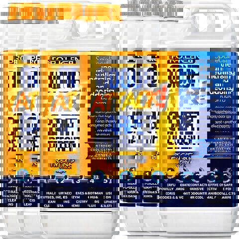 Pro-Kleen Odour Attack! is a specialist carpet cleaner shampoo formulated to neutralise and deodorise, with a fresh citrus fragrance. Supplied as a liquid concentrate in a bottle, it uses non-pathogenic bacterial spores and enzymes that digest proteins associated with malodours, alongside Advanced Odour Control Chemistry and active enzymes to break down salts.