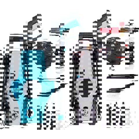 Powered by a 1400W motor with an aluminium water pump, it is built to resist rust and corrosion. The quick-change spray adaptors make it easy to switch between jobs, and the soft-bristled brush is intended for cleaning vehicles, caravans and boats. For added versatility, it comes with turbo and adjustable nozzles, plus a water inlet filter to help protect the system during use.
