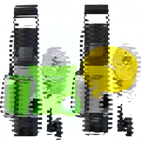 From Pro-Kleen, this 750W submersible Water Pump with 20m heavy-duty layflat Hose is designed for demanding drainage jobs, from flood water and cellars to swimming pools, hot tubs, ponds and irrigation. An automatic float switch helps the pump cut in and out as water levels change, while the open-intake impeller is suitable for both clean and dirty water, handling particles up to 35mm.