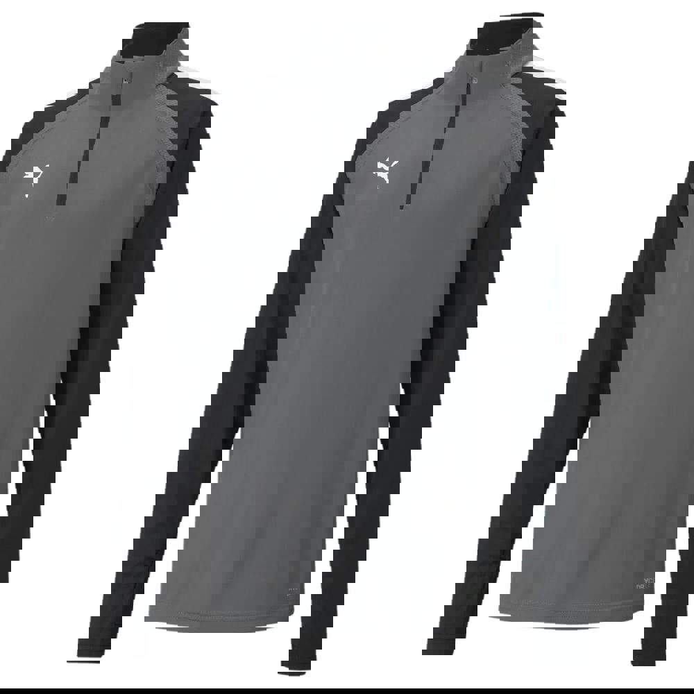 This quarter-zip football top was designed for performance. This is as practical on the pitch as it is off it. Contrasting colour sleeves (with thumb holes) and the iconic PUMA Formstrip on the shoulders make this a style statement, while dryCELL technology makes sure you stay dry and comfortable no matter what.