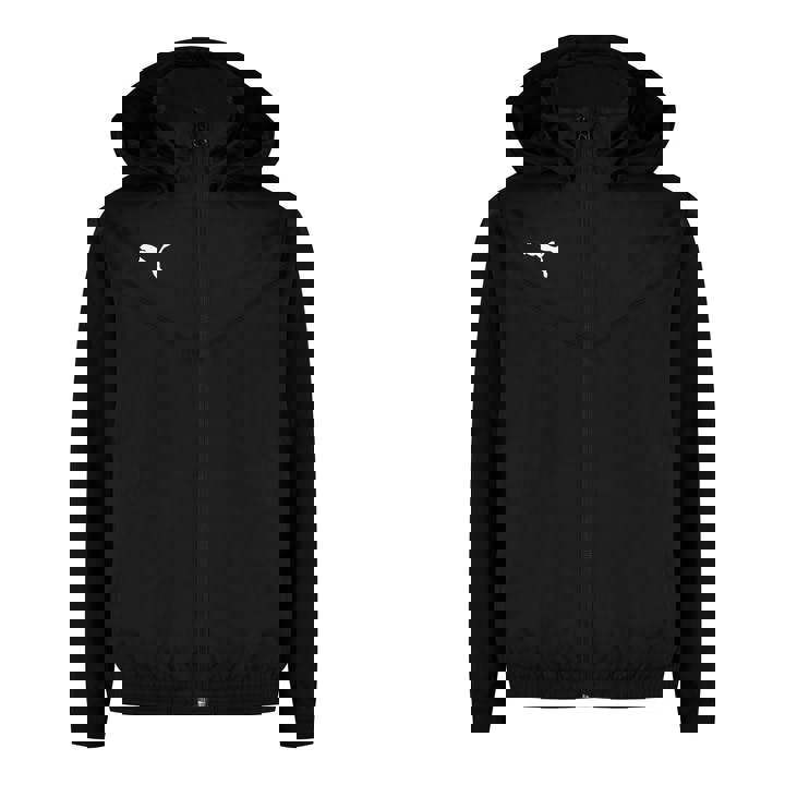 Modern designs and high-performance materials unite in the teamRISE collection to meet the demands of your team, whatever level you play at. Stay protected and match-ready in all weathers in this versatile hooded waterproof jacket featuring iconic PUMA branding