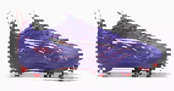 How fast is ULTRA? Fasten your seatbelt. These boots feature a brand-new SPEEDSYSTEM outsole combined with FastTrax stud design for a football boot that's miles ahead of the competition. Three rounded studs on the lateral side let you switch between firm ground and artificial grass without compromising traction. Wherever you play, play at full throttle.