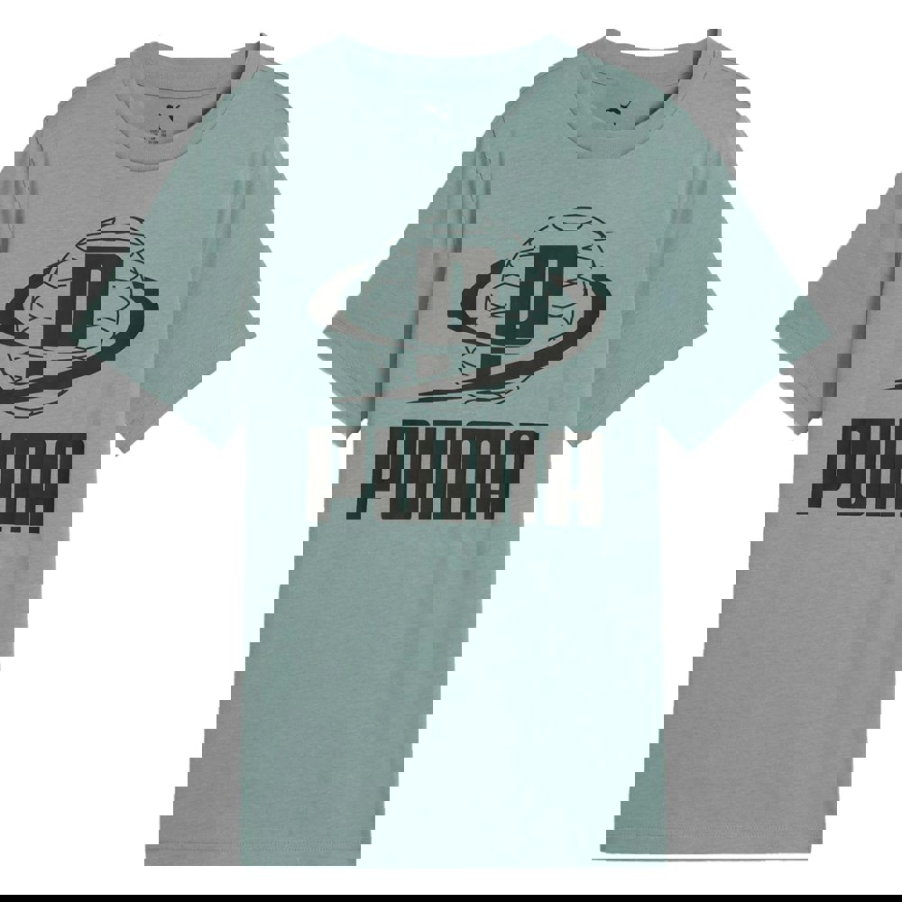 This children’s T-shirt comes in green with a graphic print and text detail. It has a crew neckline and short sleeves, finished with a rubber chest panel. The fit is regular.