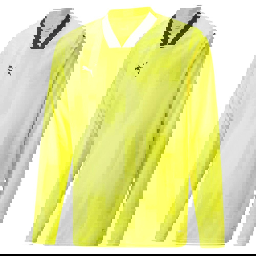 This children’s Teamtarget long-sleeved goalkeeper jersey from Puma is made from 100% polyester and finished in yellow. A logo design adds a clean, sporty look, while the V neck keeps the neckline simple and streamlined. DryCELL fabric technology and moisture wicking are specified for the construction.