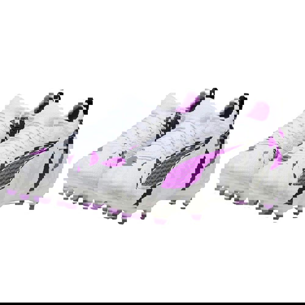 Finished in white with a plain design, these football boots feature contrast detailing and a logo for a clean, sporty look. A lace-up fastening with 10 eyelets helps provide an adjustable fit, while the lightweight build is complemented by a padded collar. A pull tab is included to make them easier to get on and off.
