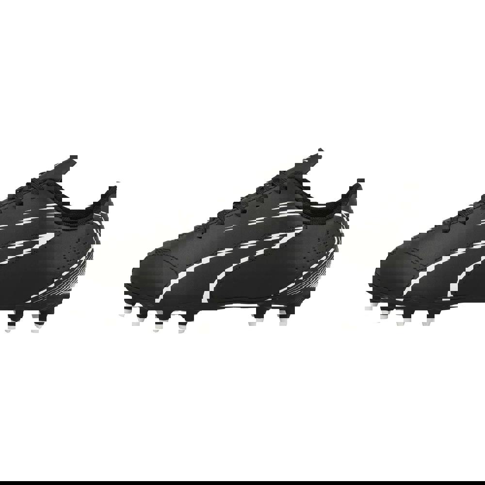 The lace-up fastening uses five eyelets for a secure fit, with a regular fit noted. Underfoot, the synthetic midsole is matched with a studded outsole made from synthetic and TPU. A printed logo completes the design. Suitable for use on artificial grass and firm ground.
