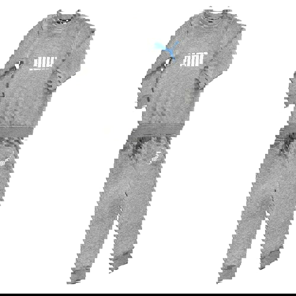 This Puma Infant Kids Tracksuit features a white/blue mini cat design, complete with a crew neck and snap closure. The jogger also features a ribbed crew neck and cuffs, with Puma branding across the chest and on the jogger itself. The jogger also has ribbed cuffs and a drawstring waist for adjustable comfort. Made from a blend of cotton and polyester, this tracksuit is not only stylish but also machine washable for easy care.