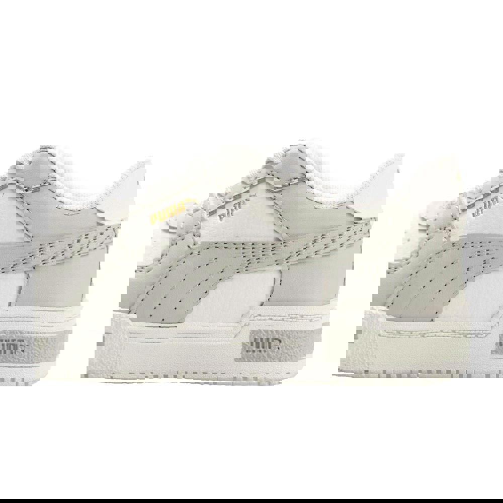 Puma Kids Pro Classic AC Trainers in white and grey combine synthetic and textile uppers with a mesh lining. The low-cut shape and round toe keep the profile clean, while contrast detailing and logo branding add a defined finish. A lace-up fastening runs through four eyelets for a secure fit. Underfoot, the midsole blends rubber and TPU, paired with a non-marking rubber outsole.