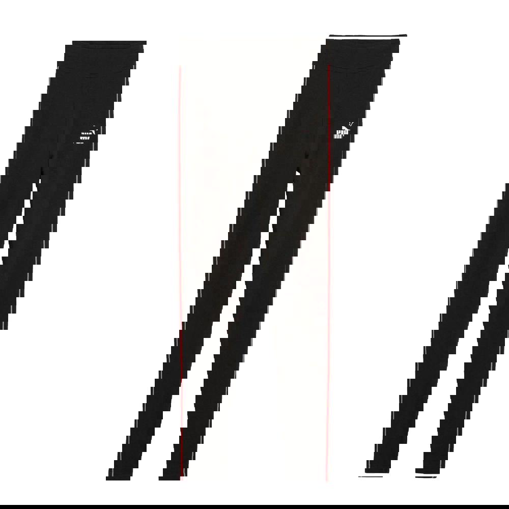 Puma Kids Sport Leggings in black with a plain finish and piping detail along the side seams. The high-rise waist is elasticated for a secure fit, and two side pockets add practical storage.