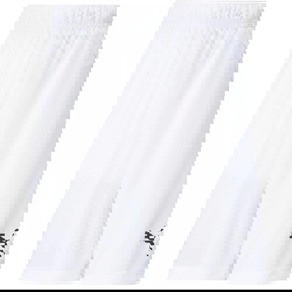 Puma Kids TeamRISE Shorts in white are made from 100% polyester with a logo design. The fabric uses DryCELL technology with moisture wicking and quick-dry performance. An elasticated waistline and regular fit complete the finish for a clean, sporty look.