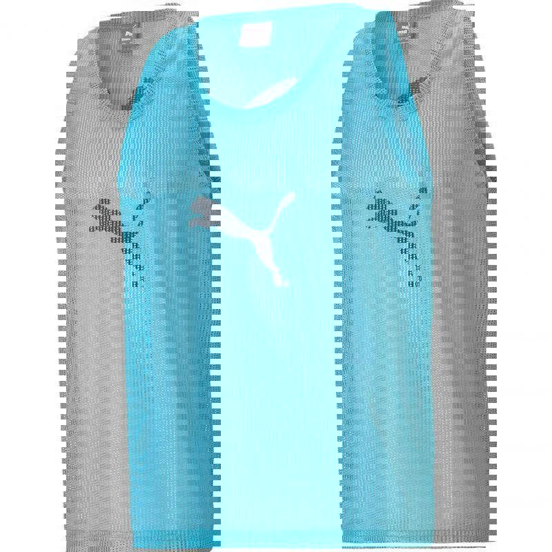 This men’s bib tank top from Puma is made from 100% polyester mesh. It comes in fluorescent blue with a plain finish and logo detail. A scoop neckline and sleeveless cut keep the shape clean and simple for training wear.