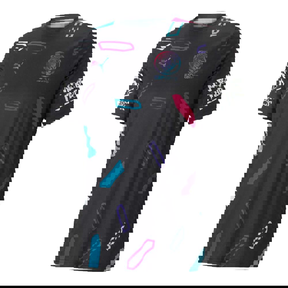 This men’s esports replica Manchester City FC jersey from Puma comes in blue and is made from 100% polyester. It has a crew neckline and short sleeves for a classic jersey shape.