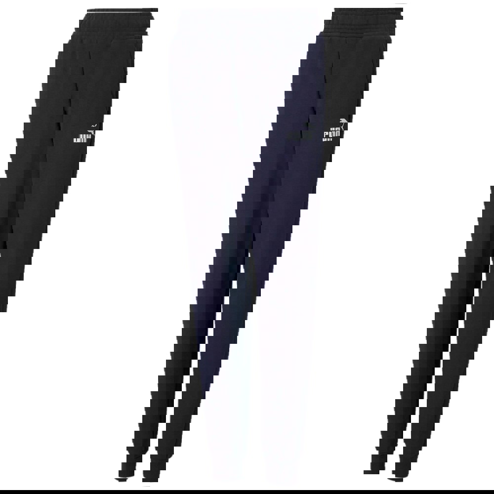 Puma ESS slim jogging bottoms in peacoat, made from cotton and recycled polyester. The regular-length design has a mid rise and an elasticated waist with an inner drawcord for adjustable wear. A logo detail completes the look, while ribbed cuffs provide a neat finish.