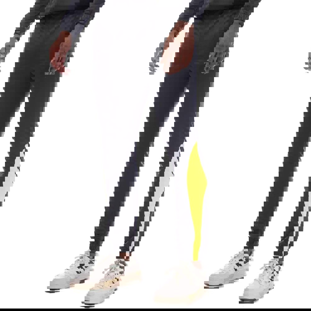 An elasticated waistline and elasticated cuffs create a secure finish, while two side pockets provide practical storage for everyday wear and training.