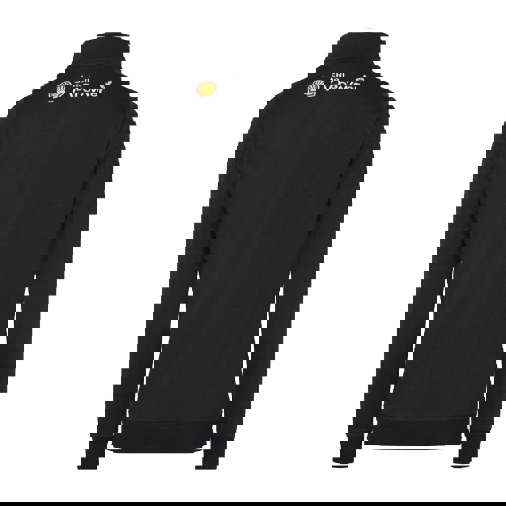 Made from a cotton and polyester blend, it has long sleeves with ribbed cuffs and a ribbed hem. A standing collar and full zip fastening complete the streamlined silhouette, making it a practical layer for everyday wear.