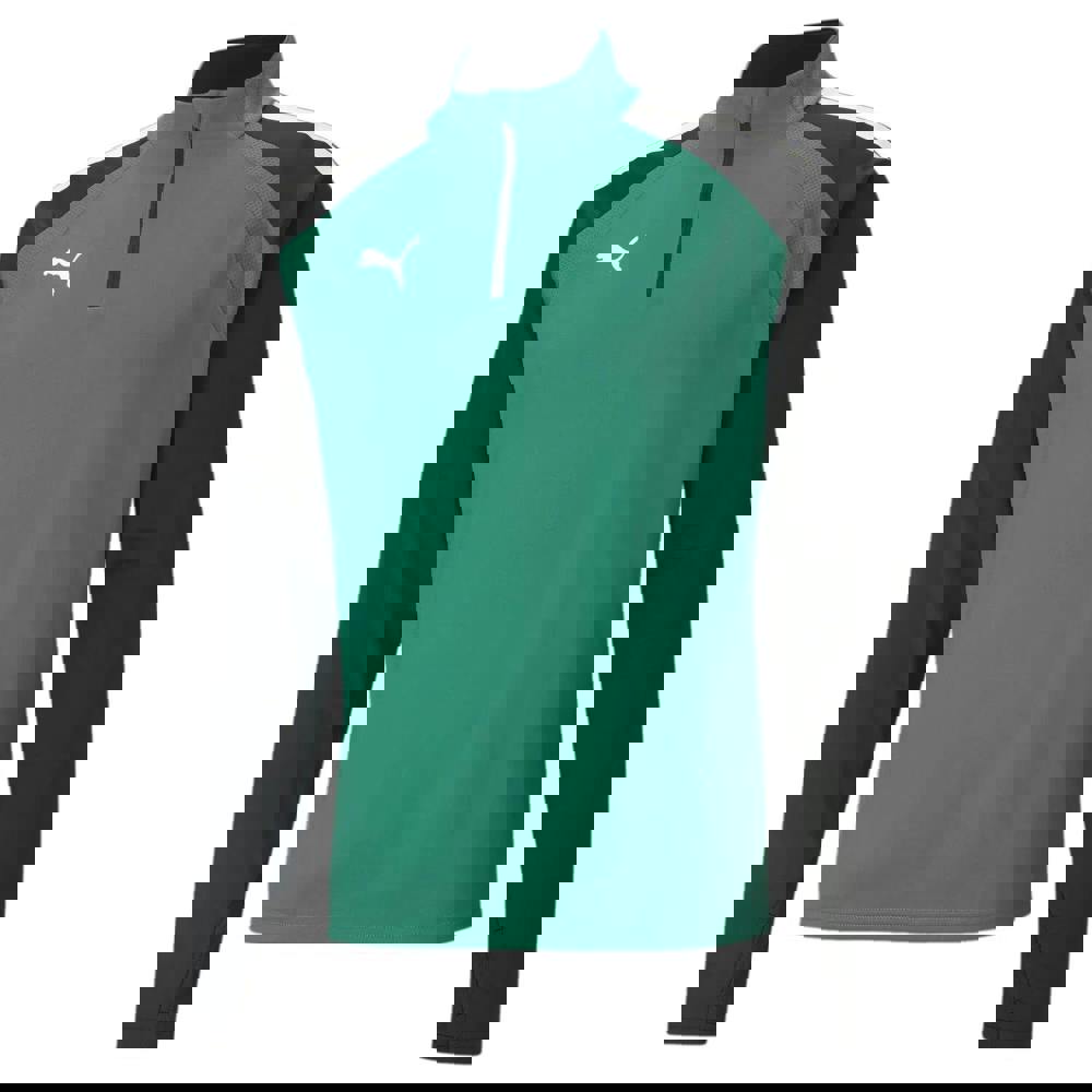 This quarter-zip football top was designed for performance. This is as practical on the pitch as it is off it. Contrasting colour sleeves (with thumb holes) and the iconic PUMA Formstrip on the shoulders make this a style statement, while dryCELL technology makes sure you stay dry and comfortable no matter what.
