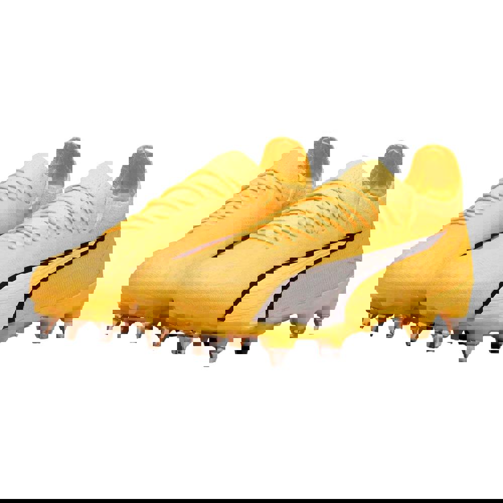 Puma Men’s Ultra Ultimate Football Boots are designed for play on soft ground, combining a low-cut profile with a lace-up fastening for a secure, adjustable fit. The round toe shape and flat construction keep the silhouette streamlined, while the logo design adds a distinctive finish.