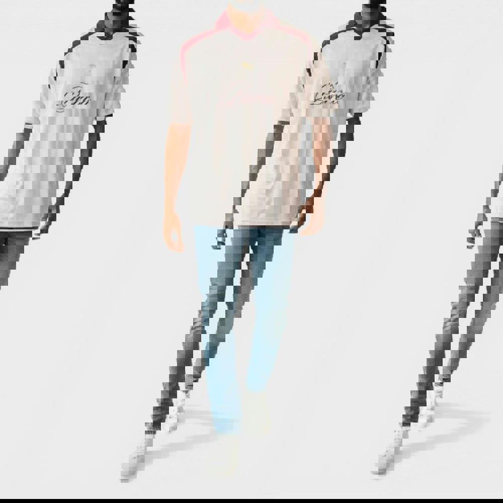 Puma Striped Relaxed Football Jersey is a football jersey from Puma with a relaxed, loose fit and a classic striped design. Finished in a rich maroon colourway, it delivers a vintage sportswear-inspired look with clean, traditional striping.