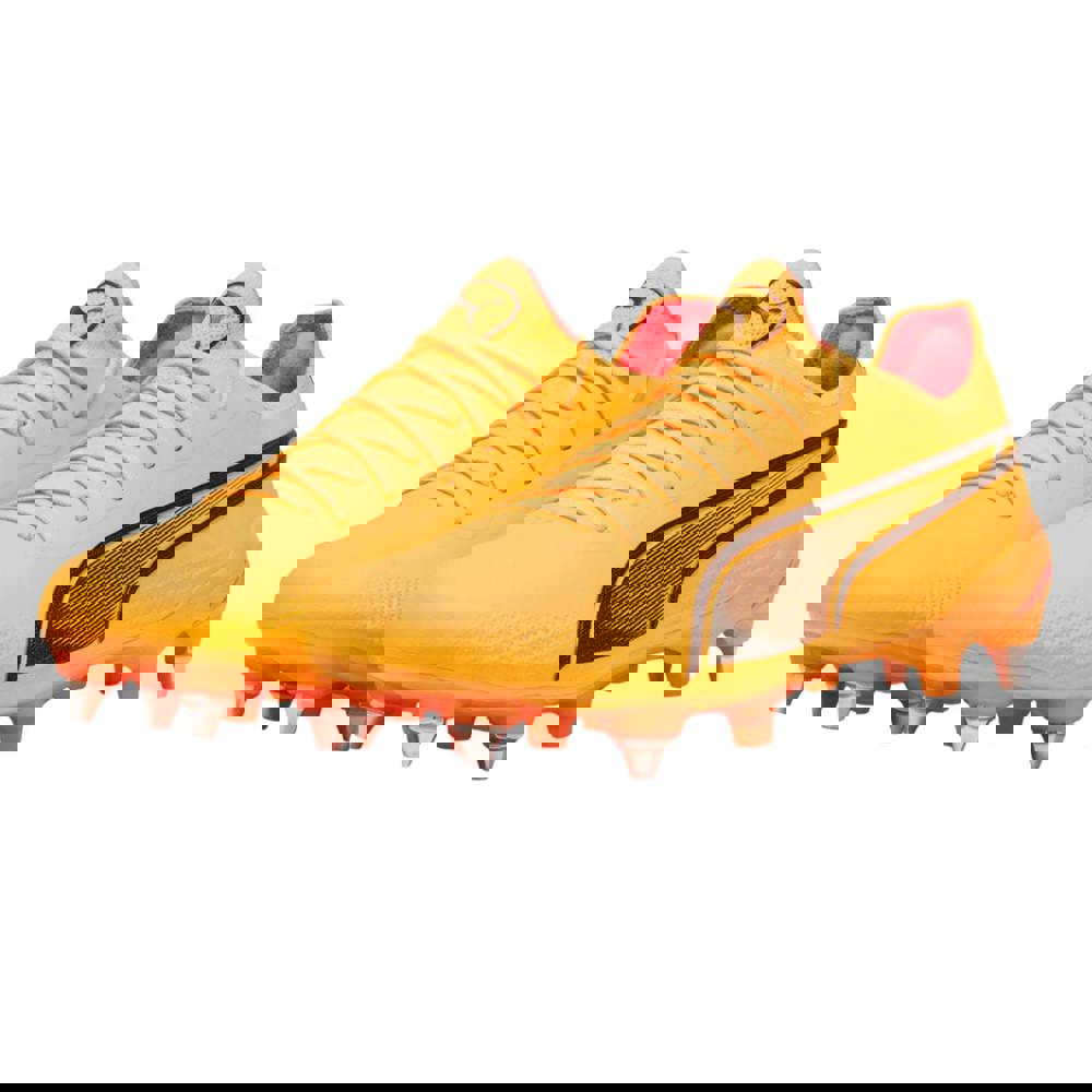 Puma Unisex Adult King Ultimate Soft Ground Football Boots are designed for play on soft ground and varying ground. With a low cut and round toe style, they offer a streamlined profile suited to match-day wear and training sessions alike. A lace-up fastening helps you adjust the fit to your preference, while the flat design keeps the silhouette clean and classic.