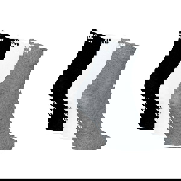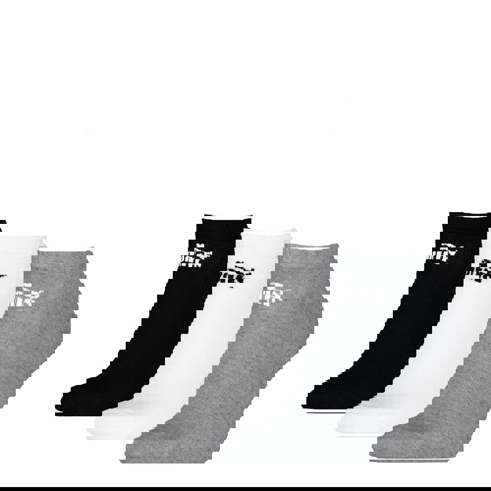 These Puma unisex adult trainer socks come in a pack of three, finished in black, white and grey. Made from a cotton-rich blend with added polyester and elastane, they offer a ventilated construction and abrasion-resistant fabric technology.