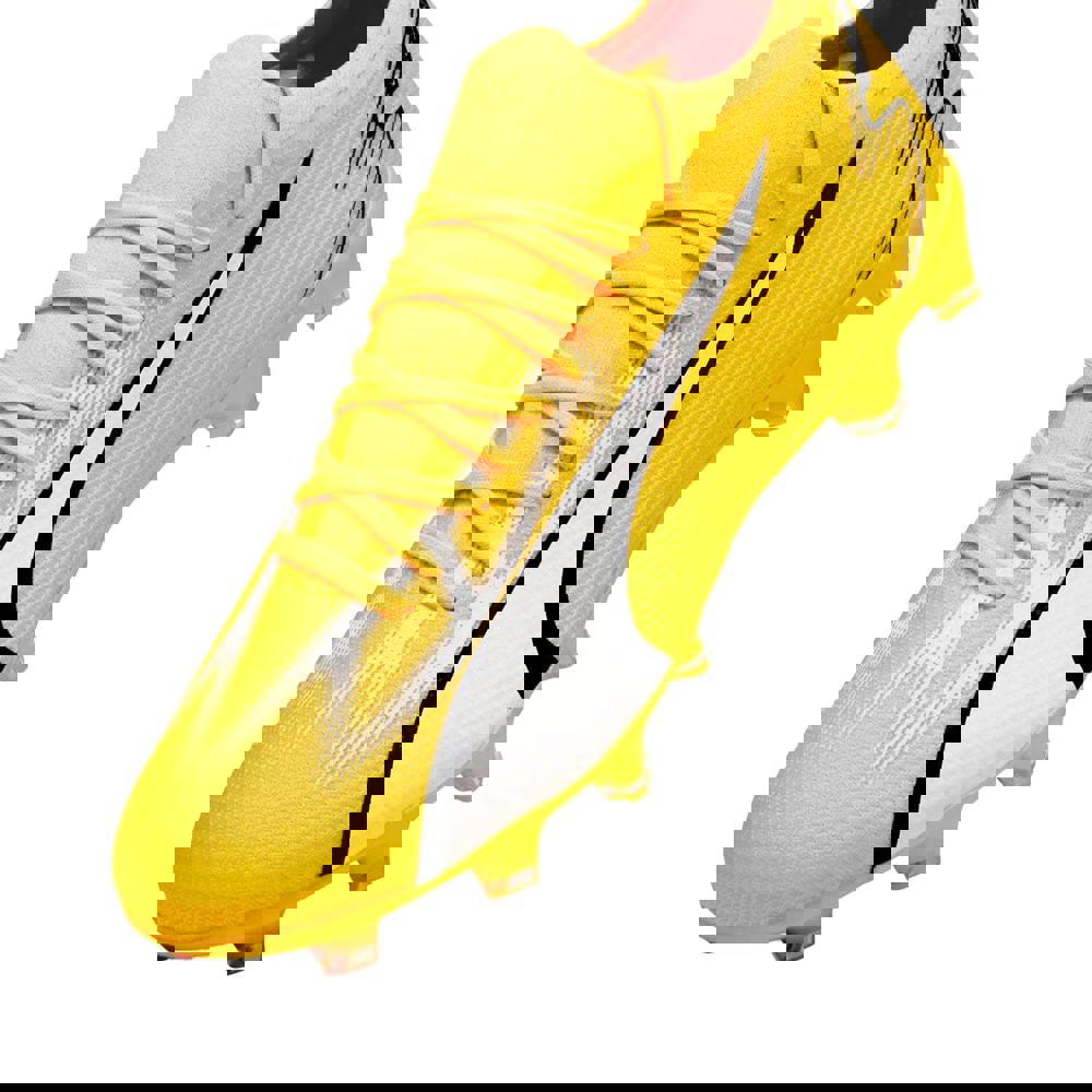Puma Unisex Adult Ultra Match Football Boots are designed for play on artificial ground and firm ground, with a low-cut profile and a round toe shape. Finished in Blazing Yellow with Puma Black and Puma White detailing, they feature a clean logo design for a modern on-pitch look.