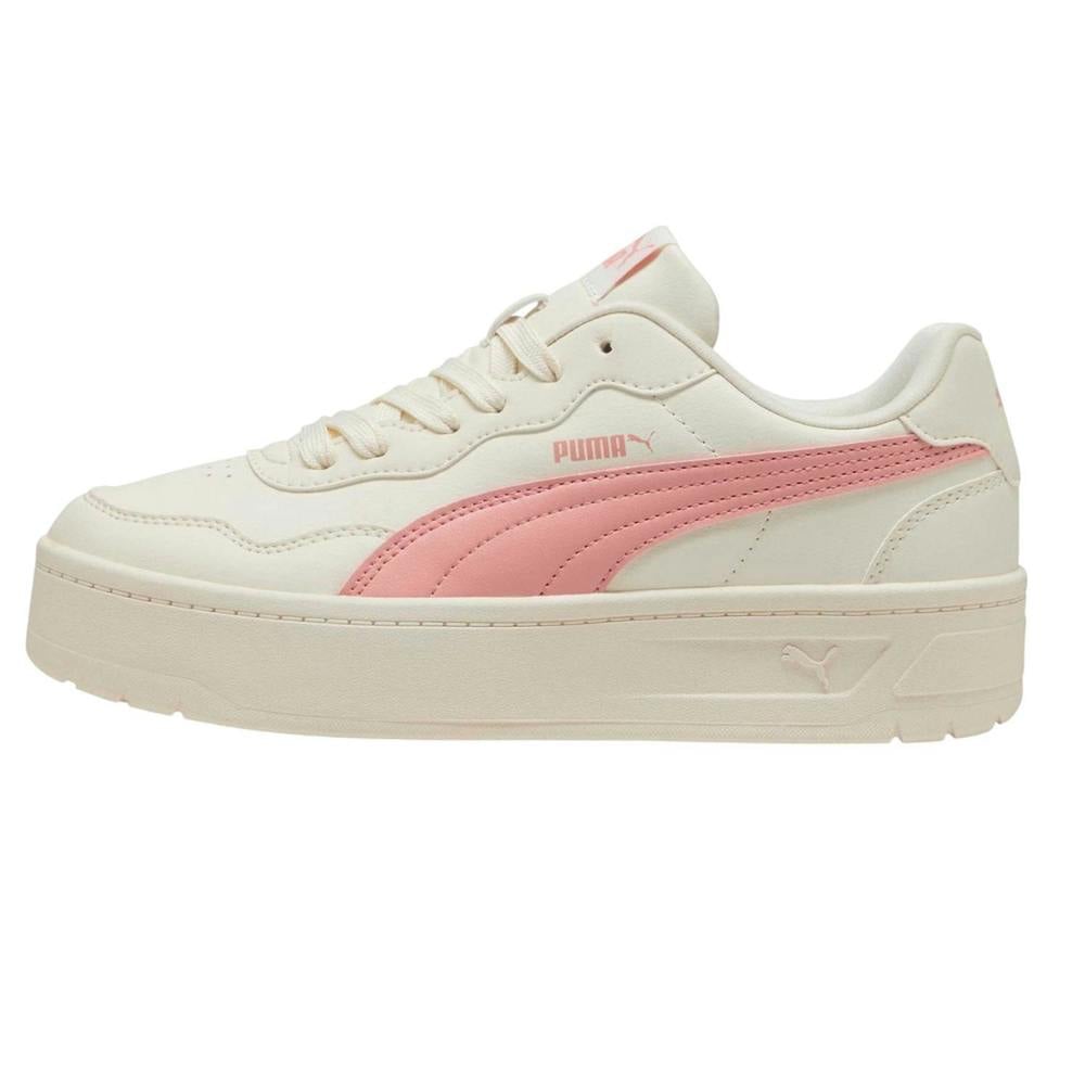 Puma Womens Court Lally Skye Trainers in ivory offer a clean, court-inspired look with a round toe and flat profile. The upper is made from synthetic material and finished with a logo detail for a branded touch. A lace-up fastening provides a secure, adjustable fit, while the textile lining adds a comfortable internal feel.
