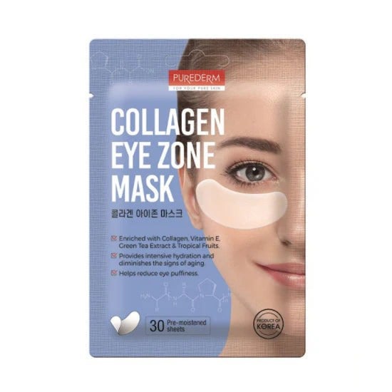 PUREDERM Collagen Eye Zone Mask brightens dull skin around eyes, while keeping the skin smoother and firmer. Contained in a resealable bag, these 30 eye patches moisturize, soothe and firm the undereye area with collagen, Vitamin E, green tea and tropical fruit extracts