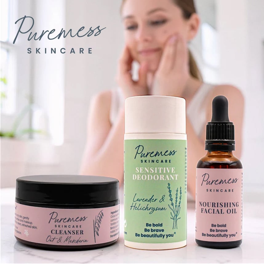From aluminium-free deodorants to hyaluronic-acid-rich face creams, Puremess specialises in creating gentle, effective products that support all skin types—especially sensitive and mature skin. We're here for slow mornings, nourishing rituals, and skin that’s truly loved.