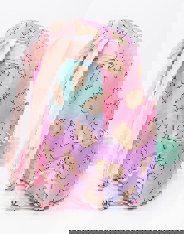Carry your goodies in Pusheen style with this adorable backpack - it is perfect for adults, children, and teens! The rucksack is ideal as a travel, luggage, laptop, or gym bag that comes in pink, purple, and blue ombre, featuring an all-over print of the animated tabby cat finished with a matching pom keyring