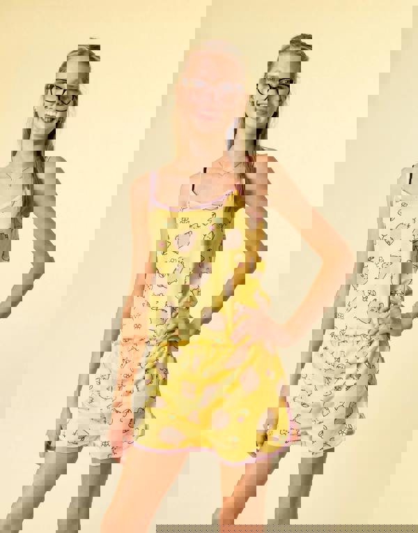 Introducing the Pusheen the Cat Girls Yellow Sleeveless Playsuit, an essential addition to any girl's summer wardrobe.