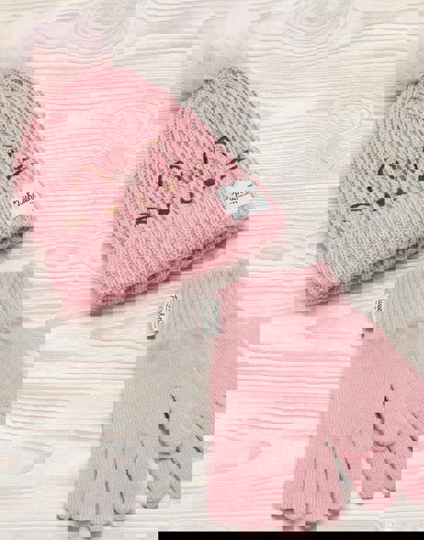 Keep warm in Pusheen style! The ladies' Pusheen the Cat beanie and gloves set comes in pastel pink, featuring the nap and snack-loving cartoon cat embroidered with an official woven logo, making it a must-have for your stocking fillers