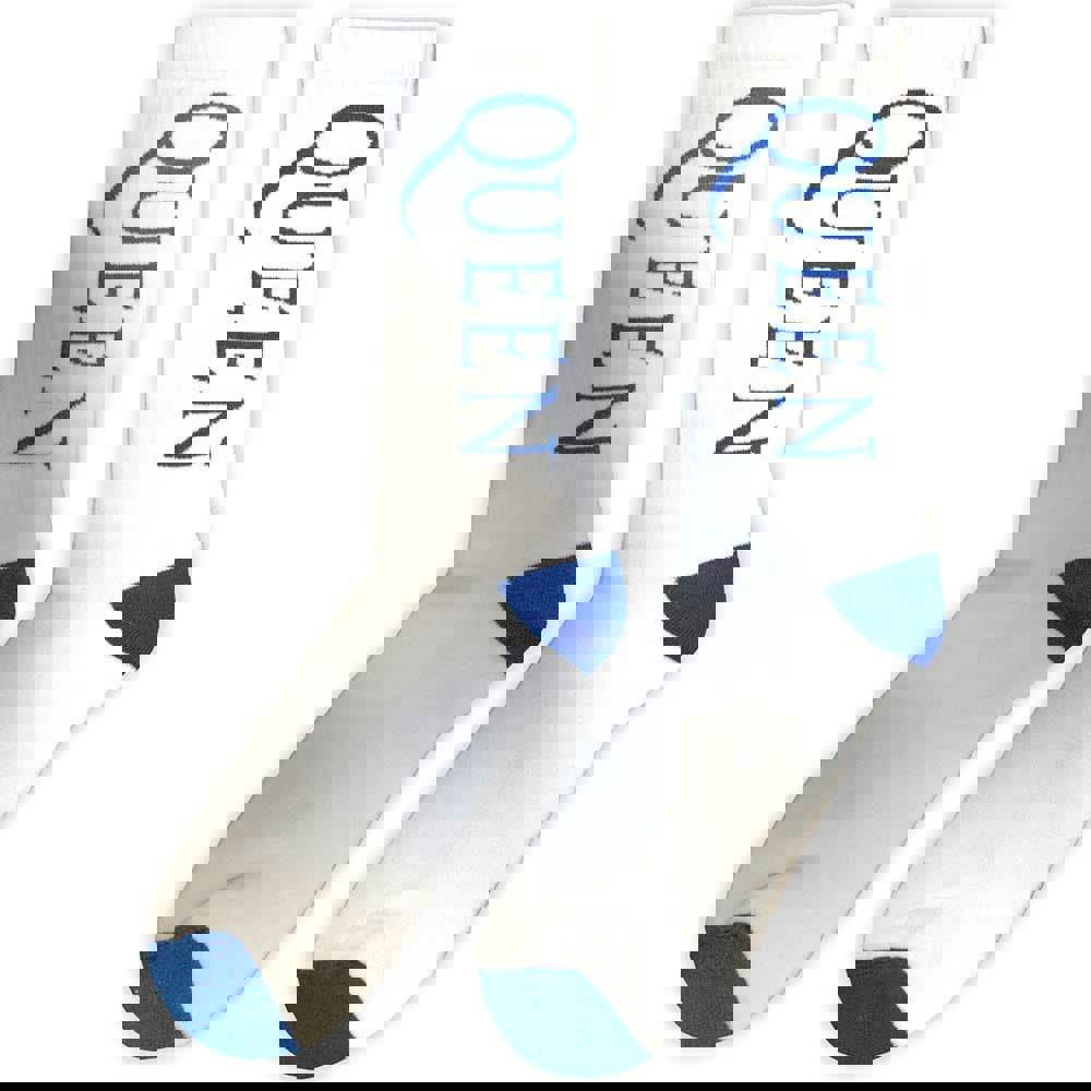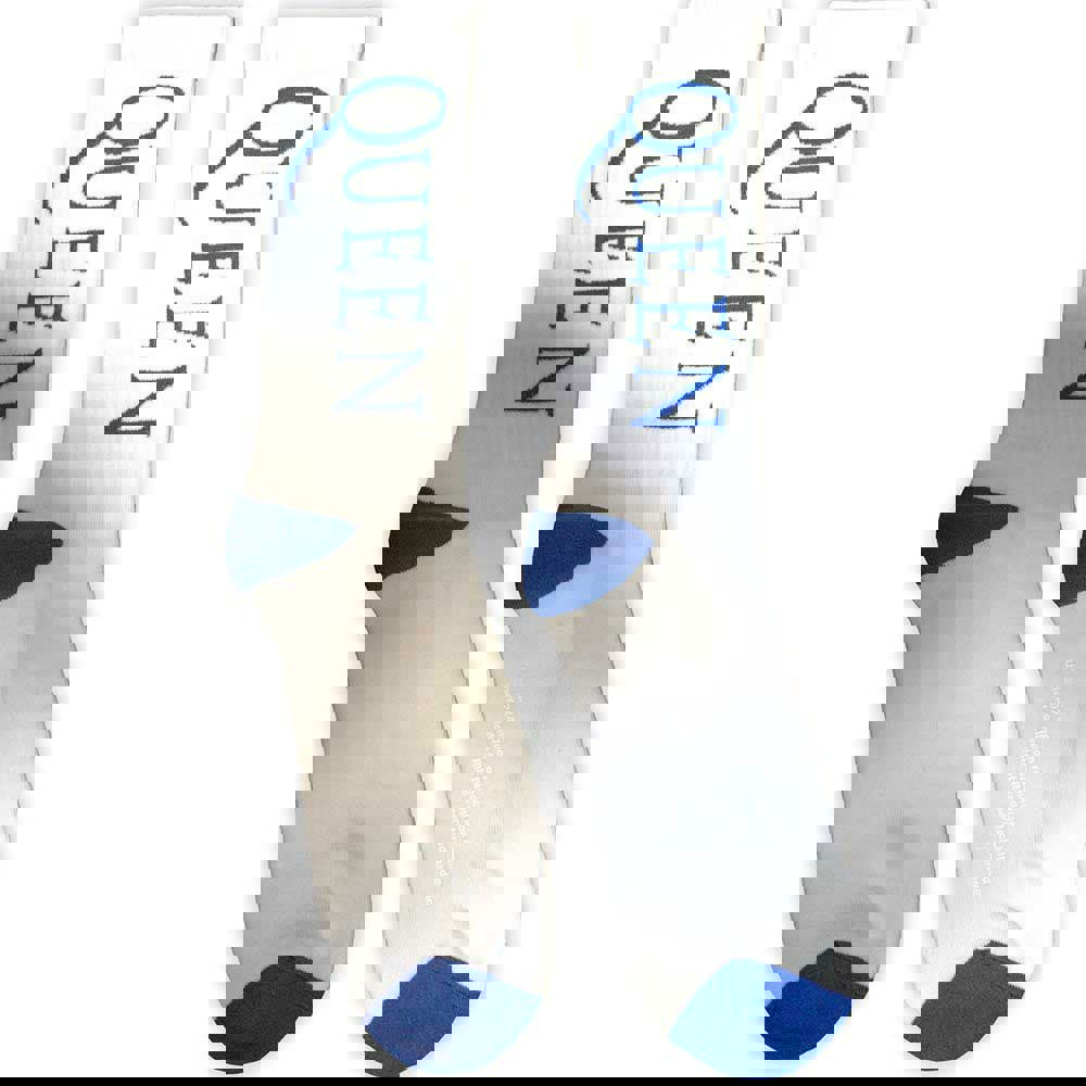 Official licensed Queen Unisex Ankle Socks featuring the 'Blue Logo' design motif. High quality Ankle Socks available in a white colourway. These premium quality, colourful, all-over pattern cotton rich woven socks are guaranteed to stand out in the crowd. They are a thicker quality cotton similar to sports quality terrycloth.