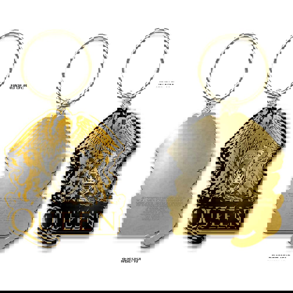 New officially Licensed band Merchandise, Queen Keychain Gold Crest classic logo new Official Metal Keyring Gold 40mm x46mm