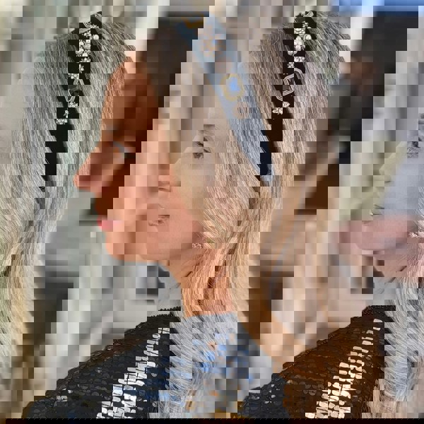 This black pearl headband is a classic piece that is effortlessly chic.